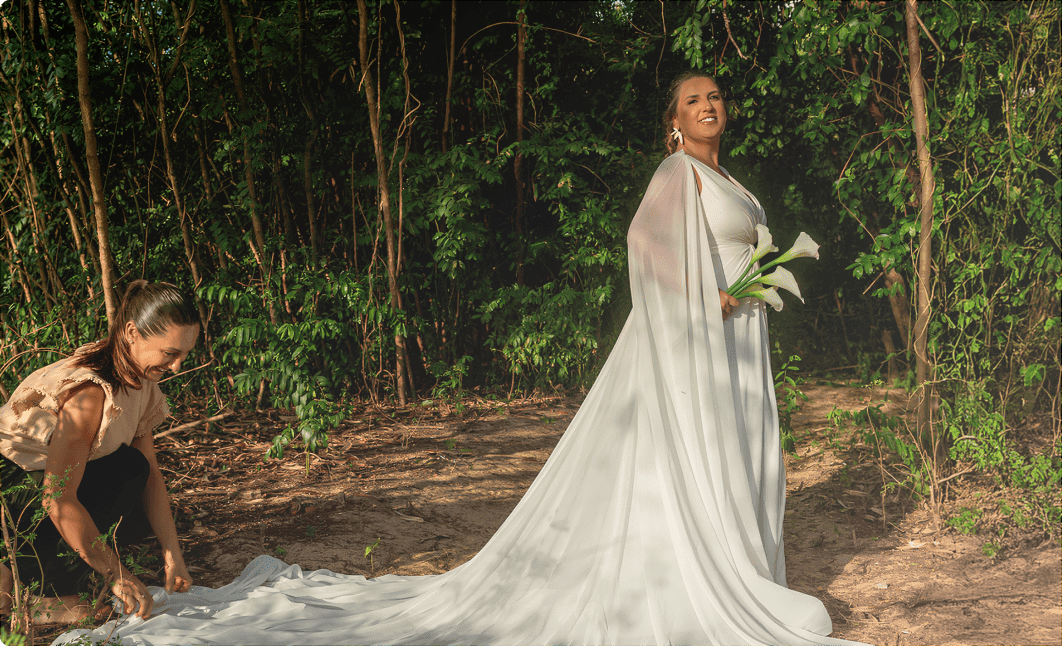 Desembarcou em 2022 e rapidamente transformou Noronha em lar. Primeiro, mergulhou nos casamentos intimistas; depois conheceu Danilo, seu irmão em Cristo e juntos deram vida à Noronha Assessoria de Noivas.